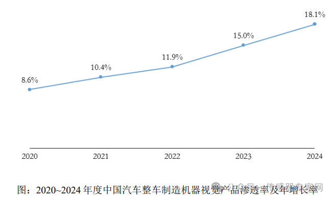 招股书披露,以国内汽车整车制造为例,根据弗若斯特沙利文的统计, 2019 年国产机器视觉产品的渗透率仅有 7.1%,2024 年已提升至 18.1%,近五年基本 保持了 20%以上的年增长率: