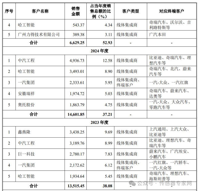 易思维前五大客户包括中汽工程、巨一科技、一汽集团、广州力得技术、安徽瑞祥、奥托股份、哈工智能、鑫燕隆等,终端客户均为国内外汽车整机企业。