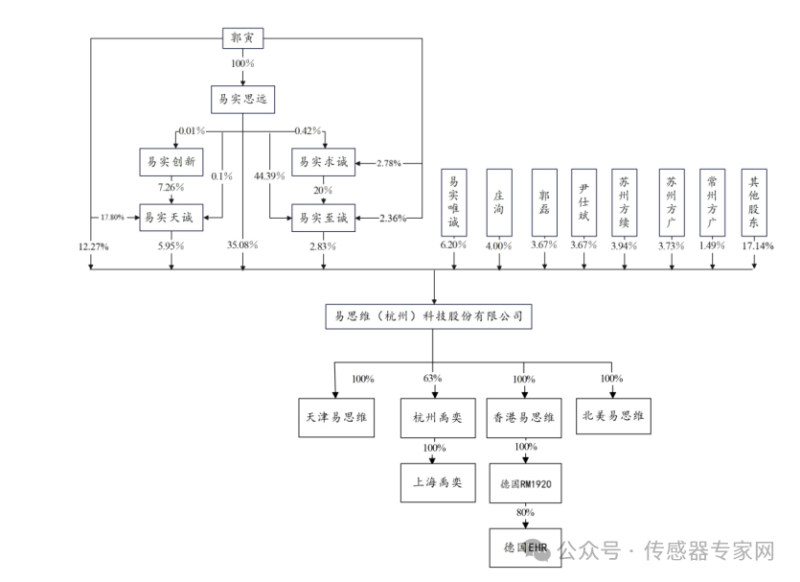 目前,易思维实控人为公司创始人&CEO郭寅,郭寅直接持有公司 12.27%股份,通过实际控制易 实思远、易实天诚、易实至诚分别间接控制公司 35.08%股份、5.95%股份、 2.83%股份,合计控制公司 56.13%股份。