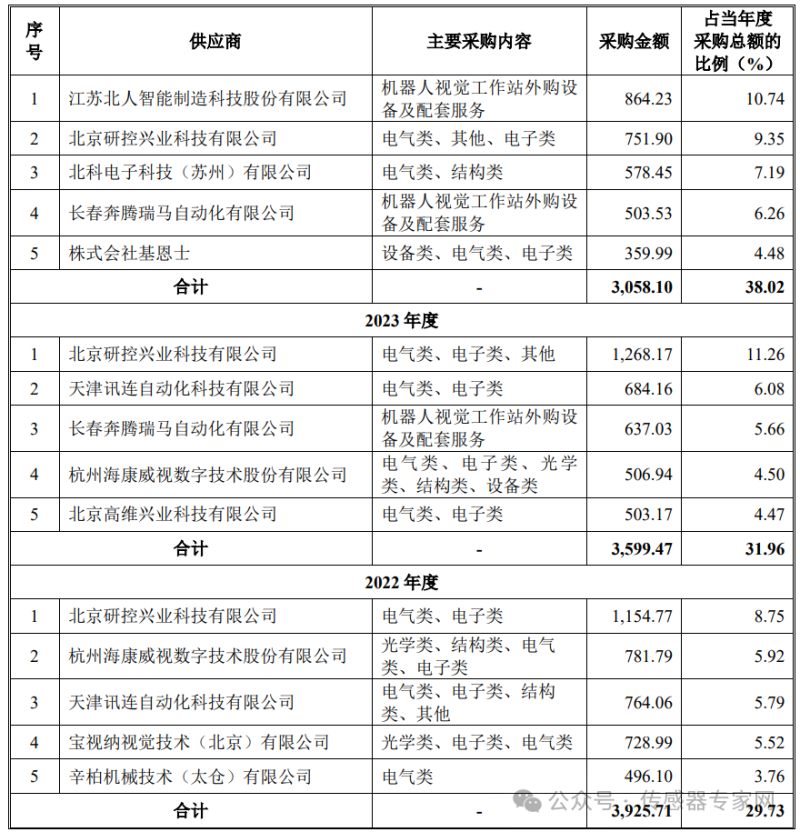 报告期内,主要供应商大部分为国内厂商,包括研控兴业、灵拓自动化、北科电子、欧瑞铭机械、北人智能制造、奔腾瑞马自动化、海康威视、高维兴业等。