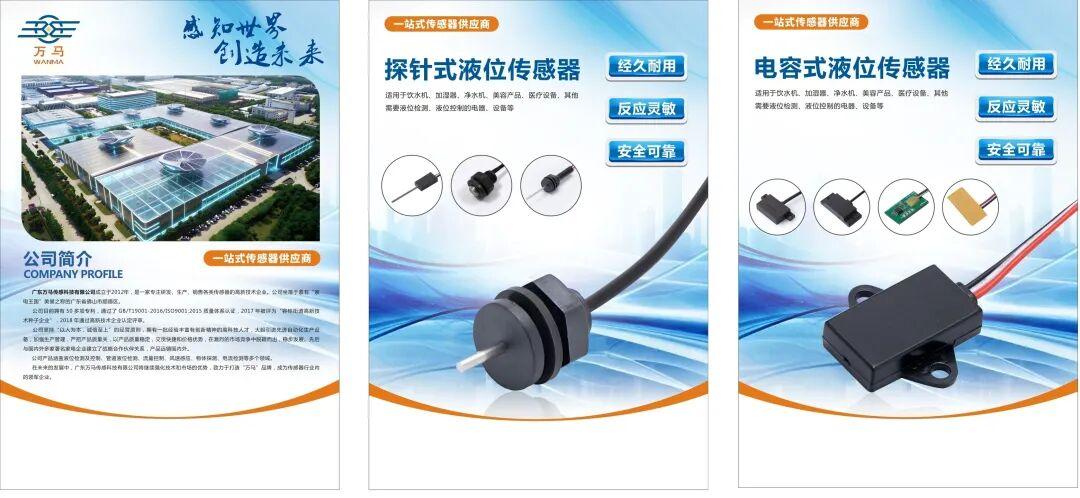 扎根顺德制造沃土,万马传感科技十余年来专注于液位、流量、物体探测、风感控制等核心传感器的设计、研发、生产与销售。产品覆盖WMSR系列耐高温探针式液位传感器、电容式液位传感器、光电式液位传感器、光电式出水传感器、管道液位传感器、霍尔式流量传感器、物体探测传感器、WMSM系列控制模块、工业级传感器等全品类,广泛应用于加湿器、热水器、饮水机、电蒸锅、蒸烤箱、锅炉、洗地机、扫地机器人、洗衣机、厨电及各类智能家居场景。