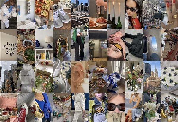 很快一呼百应,大家纷纷翻出自己的相册库存,闭着眼睛乱指,随机抽选出其中的某几张照片,组成一组图片,转发到ins。