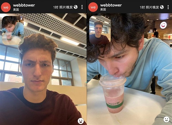 BeReal的镜头将忠实地记录你的生活,想不真实也不行,因为拍摄时,它会同时调用前后两个摄像头,既拍下你的脸,也拍下你身处的环境。