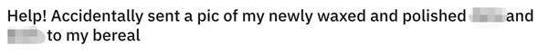 最惨的莫过于这位在Reddit上发帖的美国小哥,正给下体刮毛时,“真我时刻”来临,小哥慌忙开拍,本以为避开了重点部位,没想到镜头延迟,不小心还是入了镜,结果照片发出,小哥当场就想离开人世