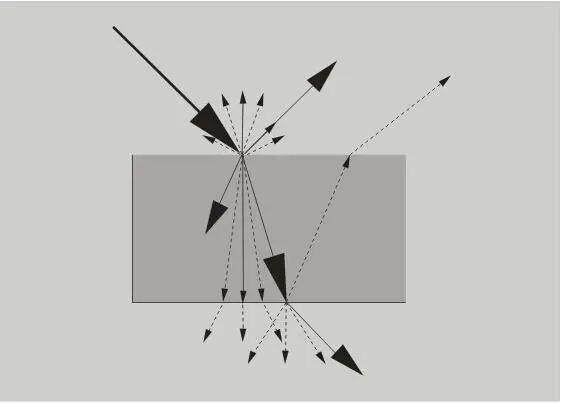 不同的表面发生各种光学现象的差异很大,例如镀膜良好的镜子表面,光照射之后几乎全部被反射,也就是镜面反射占了最主要的成分;光线接近垂直照射到玻璃上之后,几乎全部穿透,从另一面发射出去,这种情况下透射占了最主要的成分;黑色粗糙表面,基本没有光反射或者透射,几乎全部光会被吸收掉。除此之外,光学效果还取决于光源的发光方式和照射方式,例如漫射光均匀照射可以消除物体表面不平整造成的差异。而平行光照射则恰好相反,能够突出物体表面不平整的特征。