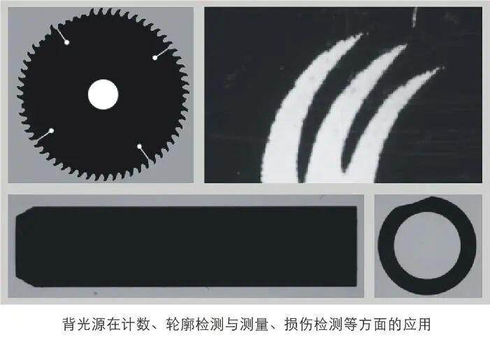 1、漫射背光源贯穿透射结构描述:漫射背光源置于待测工件正下方,摄像系统垂直于工件和光源进行拍照。主要应用:存在性检测、计数、薄片边缘检测、透明体表面和内部不透明异物或脏污检测、透明体和半透明体突变型和部分渐变缺陷、镂空打标检测等。优点:结构简单,整体价格较低,尺寸检测效果稳定可靠。一般情况下图像只有黑白两种区域,便于处理。相机正对光源拍摄,亮度容易满足。缺点:大部分在线检测项目不方便使用;多层交叠不透明体会互相干扰;有一定厚度,带倒角、圆角的物体或者圆柱体尺寸测量容易出现边缘发虚现象,结果会有偏差,如果测量精度要求很高,则可靠性不高。应用技巧:光源面积够用即可,面积过大会影响边缘效果;光源距离工件远一些,效果会在一定程度上改善;使用物方远心镜头,可以提高稳定性;图像亮度不宜过曝,通常最亮部分的灰度值不大于220。