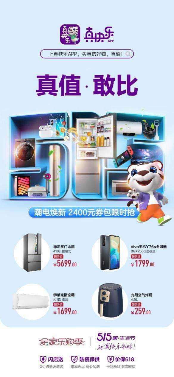 五一通常是大家电焕新的一个高峰期,受疫情影响再加上天气越来越热,冰箱、空调这样的大件家电趁着活动价购买最合适,尤其是真快乐APP推出了618价保服务,让消费者能提前享受618大促节同等优惠的价格,不得不说,太贴心了。