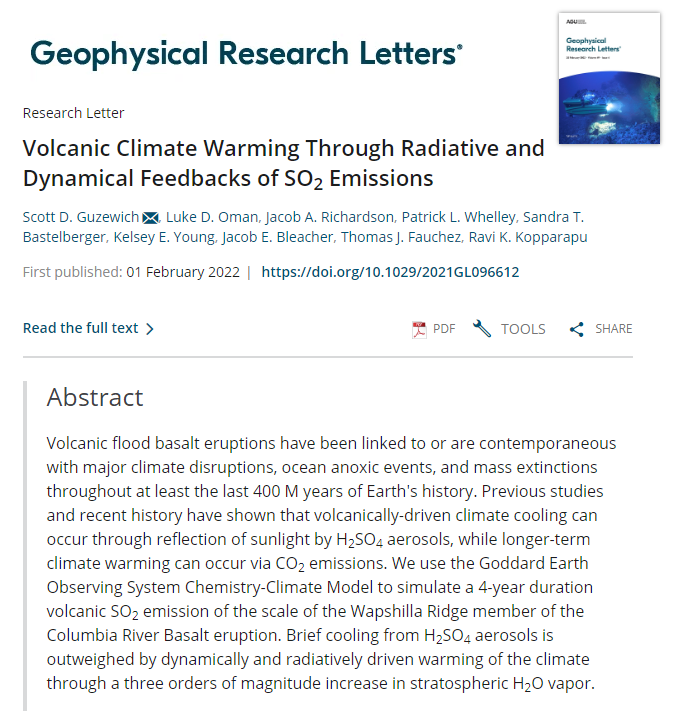 原标题为《Volcanic Climate Warming Through Radiative and Dynamical Feedbacks of SO2 Emissions》。