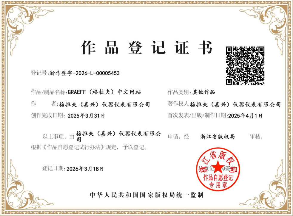 Recently, both the GRAEFF Chinese Website and GRAEFF English Website have successfully obtained the Work Registration Certificate issued by the Zhejiang Provincial Copyright Bureau, which is uniformly supervised by the National Copyright Administration of the People's Republic of China.