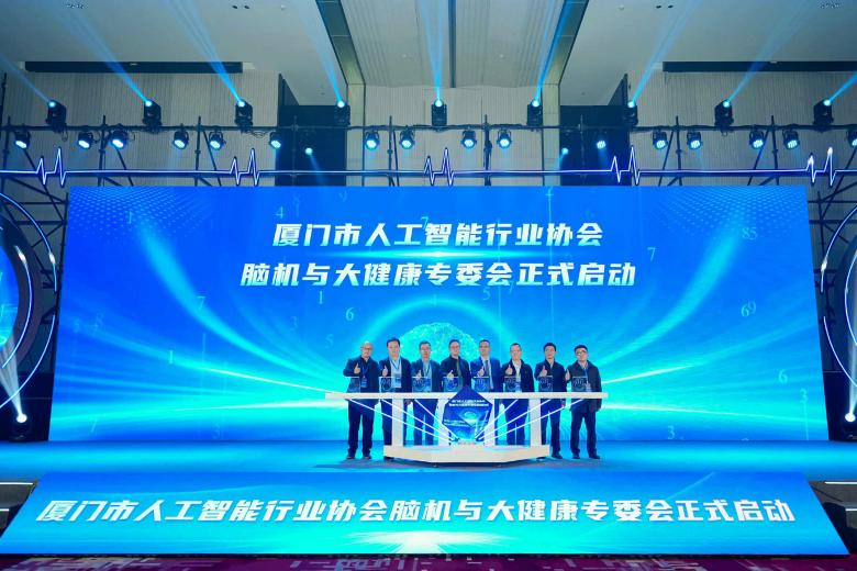 随后,狄耐克董事长缪国栋与医疗机构代表、高校院所代表、协会代表等领导上台,共同启动了“厦门市人工智能行业协会脑机与大健康专委会”。