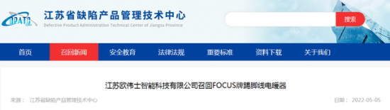 日前,江苏欧伟士智能科技有限公司按照《消费品召回管理暂行规定》的要求,向江苏省市场监督管理局和无锡市市场监督管理局报告了召回计划,自即日起,召回2019年12月至2020年1月期间制造的FOCUS牌(Q3e-2000型)踢脚线电暖器,涉及数量为104件。