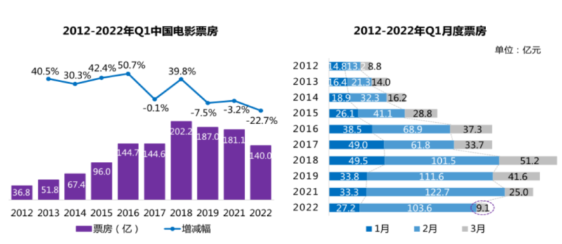 3月票房数据,图源《2022年第一季度中国电影市场报告》