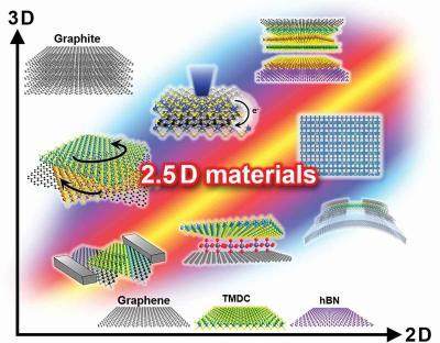 以石墨烯为代表的二维材料可以通过任意控制材料和角度的范德瓦尔斯力进行层压,因为它提供了一种不局限于传统键的合成方法,从而给材料科学带来了巨大的范式转变。此外,在层压二维材料层之间存在特定的二维纳米空间,为新的科学奠定了基础。因此,本领域将“积累自由度”和“二维纳米空间”这一新理念引入各种二维材料,并提出了“2.5维材料科学:物质科学的范式转变,旨在实现社会变革”,这是传统研究的重大飞跃。在这个领域,日本研究人员象征性地将二维+α的新可能性描述为0.5维,并开展研究。2.5维材料通过使用先进转移技术人工堆叠不同的二维材料构成,不受晶格常数或成分的限制,可以控制材料层数及其堆叠角度。2.5维材料有望开启材料科学的新突破。