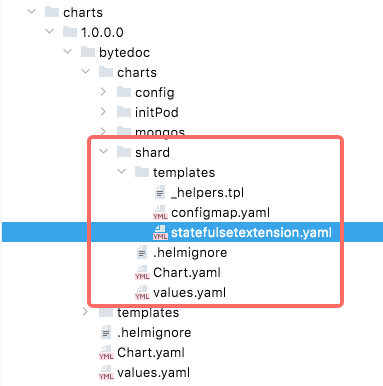 上面说到,ByteDoc 每个组件实际上用了 K8s 内置的资源来管理的,一般情况下,我们不需要从头编写整个 CR 的 yaml 文件,更多的是调整一个固定模板里的动态参数,比如 mongos 的实例数,CPU、Mem 资源限制等。