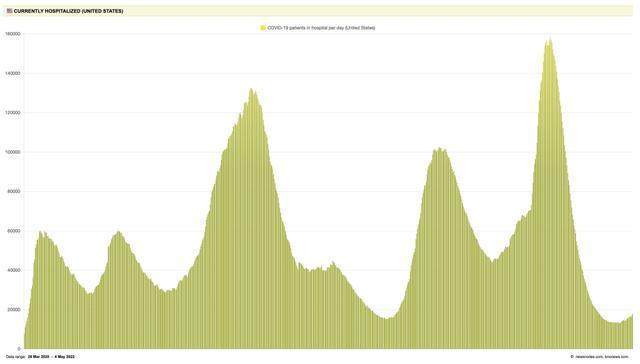 2020年3月至今的美国新冠住院人数曲线 图片来源:Twitter @Eric Topol