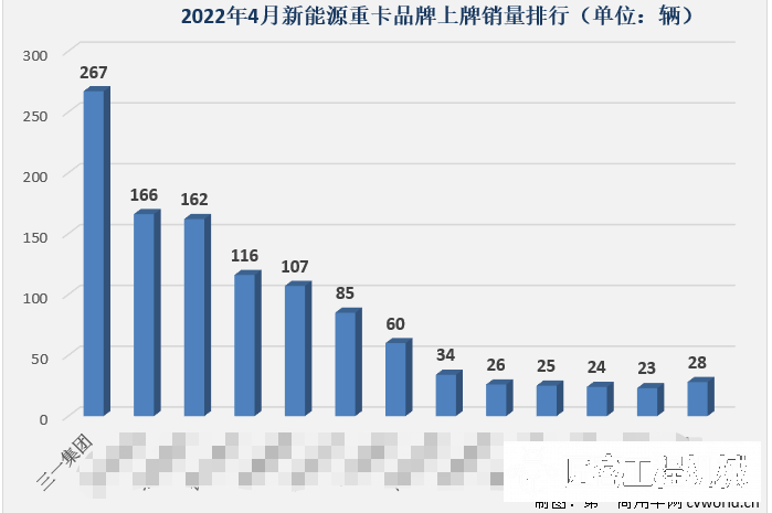 其中4月,三一新能源重卡上牌销量267辆,以超第二名101辆的优势跃居市场月销量榜第一。