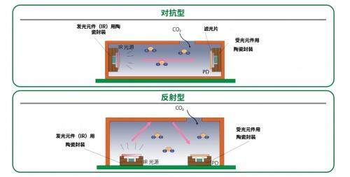 NDIR型气体传感器需要搭载一组发射红外线的“发光元件”和接收红外线的“受光元件”。