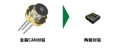发光元件大多使用LED和MEMS微型加热器,可以通过将金属CAN封装替换为陶瓷封装,实现无引线(pin)的表面贴装,从而实现小型·薄型化。