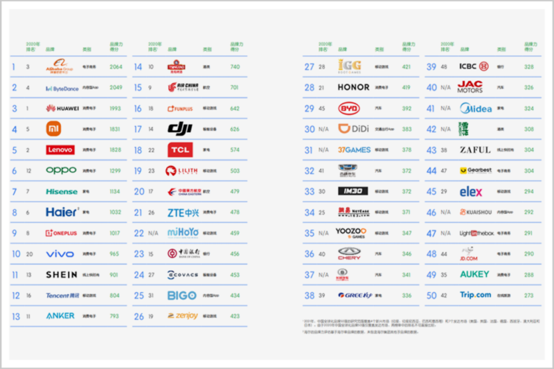 ▲来源:2021凯度BrandZ?中国全球化品牌50强榜单