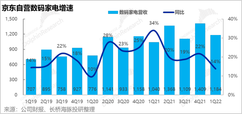 a. 自营数码家电本季收入1184亿元,同比增长14%,继续高于社会零售中的通电大盘增速是7%,增速仍超预期。