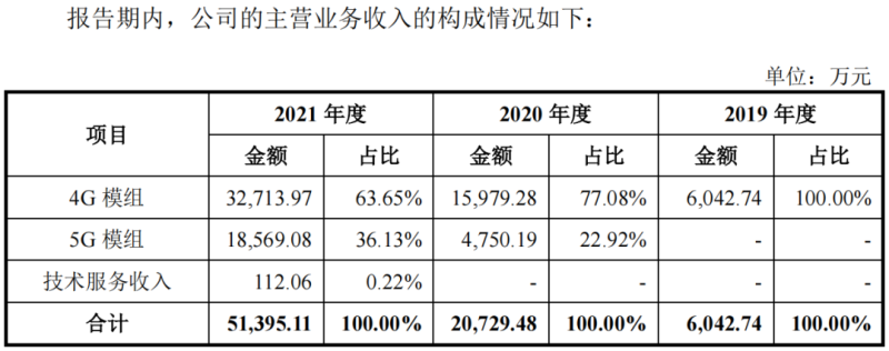 在这一过程中,慧智微5G模组出货量和收入均快速增长。2021年智微5G模组收入同比增长290.91%至1.86亿元,占总收入36.13%。
