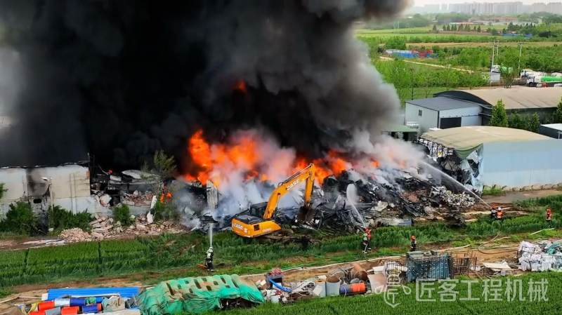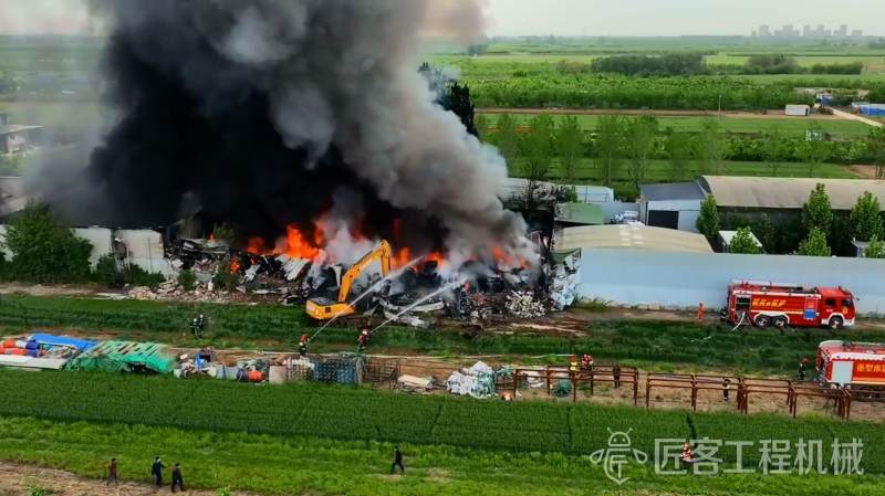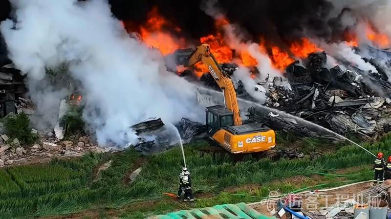 5月14日早上8点,石家庄栾城区乏马村某工厂发生火灾,消防队员与城乡工作人员第一时间赶往现场,并就近调派施工的凯斯CX210C参与救火,现场经过争分夺秒的救援,11时火情发生地浓烟消散,道路交通恢复秩序。