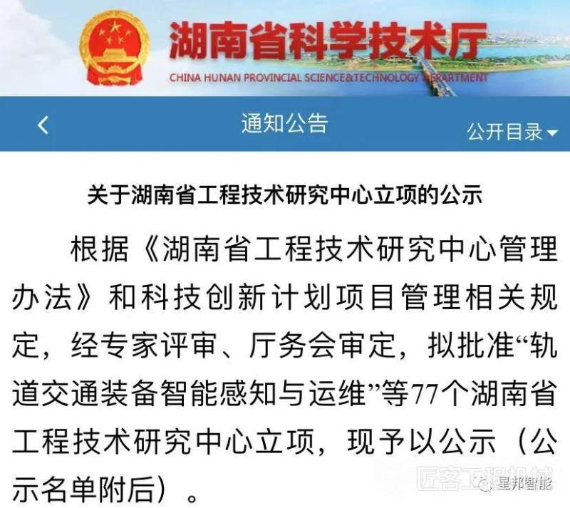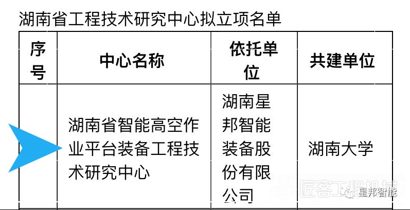 5月18日,湖南省科学技术厅发布《关于湖南省工程技术研究中心立项的公示》,星邦智能“湖南省智能高空作业平台装备工程技术研究中心”正式获得湖南省科技厅认定。