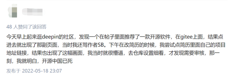 网友吐槽:审核会影响开源的发展吗