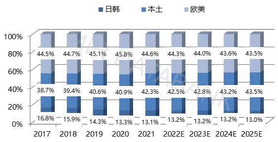 2017-2025E年中国低压变频器市场日韩/本土/欧美份额占比