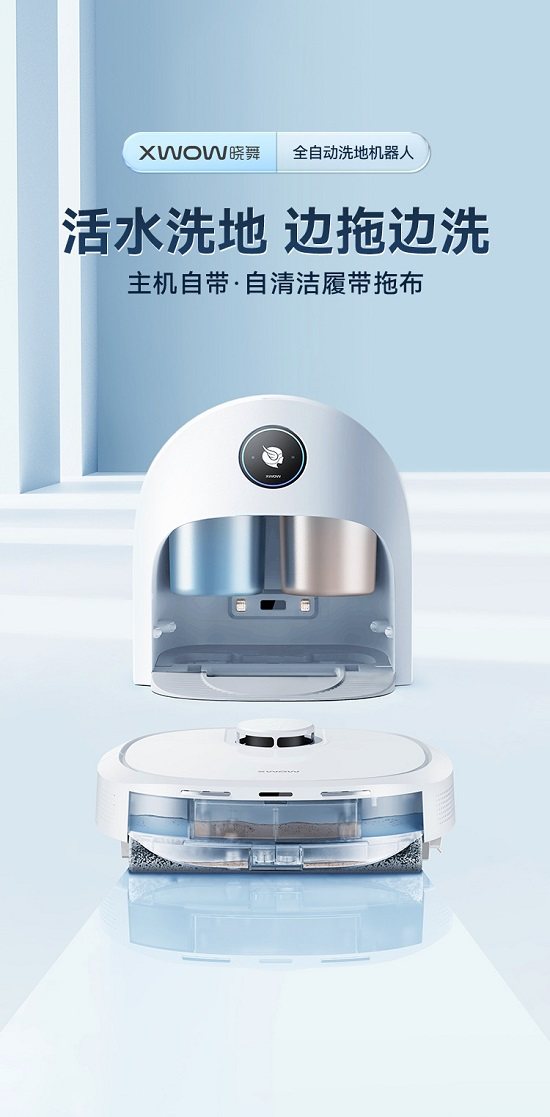从官方的宣传资料来看,XWOW晓舞首款产品ZC101全自动洗地机器人,以自清洁履带式拖布、机身自带清水污水盒,清水稀释污渍,污水被回收到污水盒,清水再次喷洒到地面,自行完成清洁自循环;此外,配合机身20N的对地压力,拖布可以上下翻转,让晓舞可以实现活水洗地,就像扫拖机器人一样不用过多介入的全自动交互逻辑成为区别于传统清洁机器人最大的特点,此技术特点对消费者而言更多的是拖地更干净了,特别是针对顽固污渍和湿垃圾,可以达到手持洗地机一样的效果。
