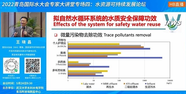 从微量污染物去除功效来看,PPCPs在景观湖中能得到有效去除;从生物毒性控制功效上来看,景观湖也有效控制了各类生物毒性,而水回用的水质安全得到了有效保障。其自然作用机制,①是吸附作用,②是光解作用,③是水生生物净化作用。王晓昌教授表示,构建拟自然水循环系统是污水资源化利用未来的发展方向,其水质安全保障功效已经在实践中得到了验证。