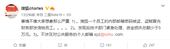 今日,媒体曝出搜狐全员遭遇工资补助邮箱诈骗,部分人上当,导致工资卡余额被划走。