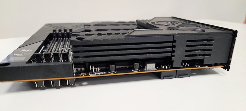 24针主板供电接口、SATA接口、各种插针,都被放到了边缘,一律横置朝外。