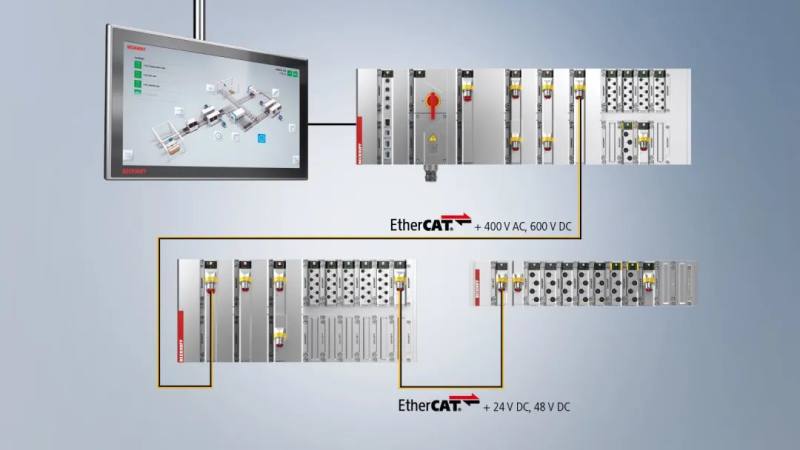 热插拔功能模块涵盖了设备上所需的所有功能,分为工业 PC、总线耦合器、I/O 和运动控制、继电器以及系统产品领域。它们都是基于倍福基于 PC 和 EtherCAT 的控制和驱动技术的成熟产品。该产品系列已经扩展到包括用于直接切换单相或三相交流执行机构的功能,如异步电机或电加热器。倍福的运动控制产品系列已经进一步拓宽到变频器。新产品还包括为控制功能提供所需基础架构的系统模块,例如,24 和 48 V DC 的开关电源、UPS 模块和以太网交换机。