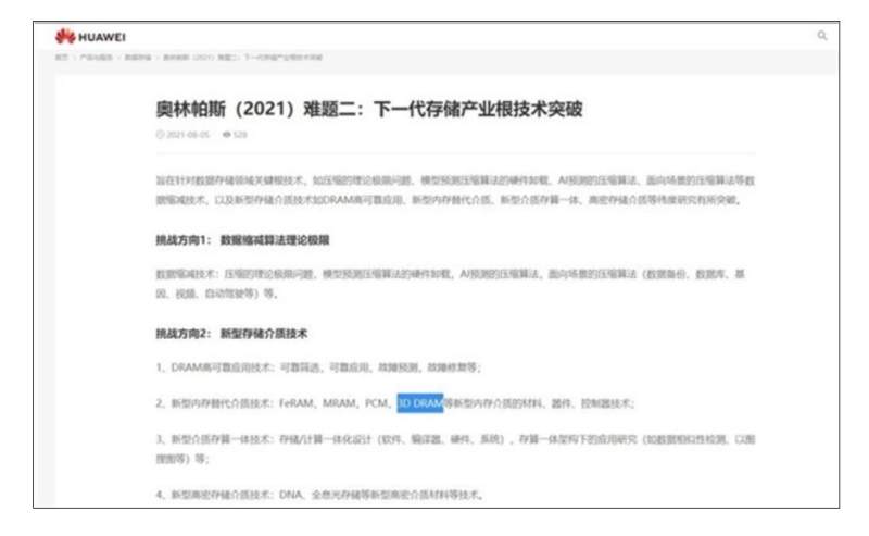 在华为此前发布的存储器相关文章 ——《华为麒麟带你一图看懂存储器》中,华为表示随着芯片尺寸的微缩,DRAM 工艺微缩将越来越困难,“摩尔定律”走向极限,因此各大厂商在研究 3D DRAM 作为解决方案来延续 DRAM 的使用。