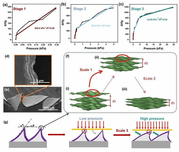 近年来,人工智能和柔性电子的发展推动了柔性压力传感器需求的快速增长,尤其是各类应用场景对传感器灵敏度和压力范围的要求越来越高,迫切需要构建同时具备高灵敏度和宽压力范围的器件。