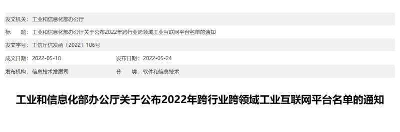 据工信部介绍,按照《工业和信息化部办公厅关于组织申报2022年跨行业跨领域工业互联网平台的通知》(工信厅信发函〔2022〕38号)要求,经企业申报、地方推荐、专家评审、网上公示等环节,确定了2022年跨行业跨领域工业互联网平台名单。请各地结合实际,加强对相关平台的服务指导,不断推动工业互联网平台创新发展。