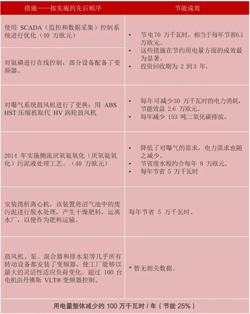 高碑店污水处理厂的运营商北京排水集团已经启动了一项优化计划,并安装了38台丹佛斯的AQUA变频器(变频电机控制器),总容量为6.4兆瓦,能效提升预计将达25%-40%。