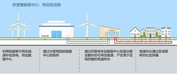 Facebook的欧登塞数据中心园区于2019年9月开放,占地5万平方米。之所以将地点选在欧登塞市是为了便于回收余热。欧登塞市的区域供热系统由FjernvarmeFyn A/S运营,该公司也参与了系统的设计和建造。
