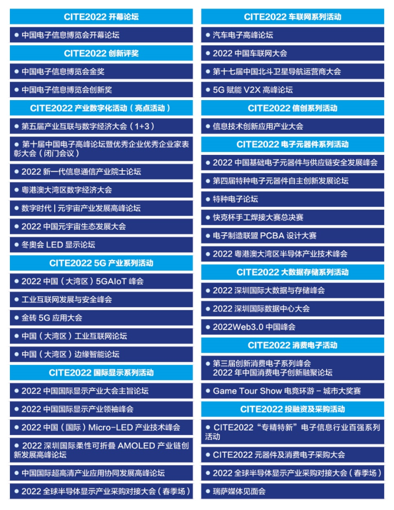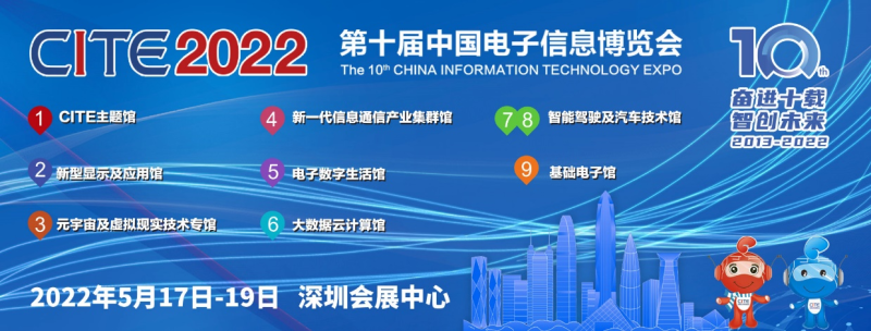 第十届中国电子信息博览会(CITE2022)展示面积达100,000平米,展示领域紧跟行业重点,并根据行业实时热点融入新的展示领域,涵盖智慧家庭、智能终端、5G、人工智能、物联网、第三代功率半导体、IC设计、超高清视频、3D玻璃盖板、半导体显示屏、AR/VR、AI+数字孪生、机器人、消费电子、大数据与存储、车联网、自动驾驶、传感器、跨境生态、燃料电池、充电技术、工业互联网、信息技术应用创新产、基础元器件、特种元器件等热门话题。