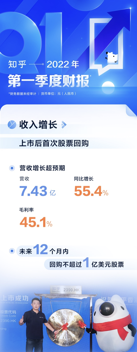 5月25日,问答式在线社区知乎公布了2022年第一季度未经审计的财务报告,知乎收入保持持续交付,并且超出市场预期。基于对未来的信心,知乎还宣布在未来12个月内进行至多1亿美元的股票回购计划。