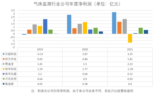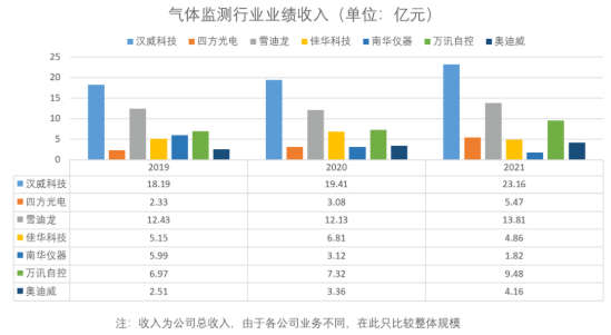 从收入来看,汉威科技是规模最大的公司,在财报中也可以看出,汉威科技在气体监测领域进行了广泛的布局,从传感器到终端,再到数据搜集系统,汉威在整条产业链上广泛布局,打造一站式的气体监测解决方案。而增速较快的四方光电和奥迪威也不容小觑,它们分别在气体传感器和智能传感器领域深耕,立志打造优质的产品。