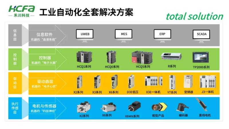 禾川科技主要产品涵盖了工业自动化整个系列,包括伺服系统、控制器(PLC)、视觉系统、编码器、变频器、触摸屏等。