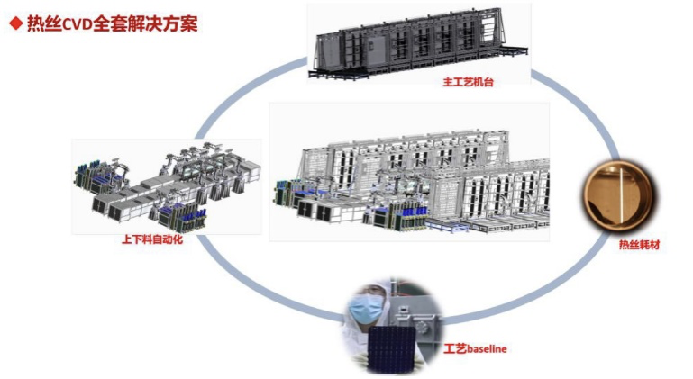 汉可公司的主要产品是为非晶硅镀膜环节提供热丝CVD装备。和PECVD相比,热丝CVD的结构相对简单,具备造价低、稼动率高,容易扩大产能;气体能耗低,没有等离子体损伤,无粉尘污染,可实现更高的光电转化效率等显著优点。早期热丝CVD技术在日本三洋电机公司的异质结电池生产(在2009年被松下收购)中广泛应用。国内对于热丝CVD技术研究十分有限,从国产化角度而言,汉可公司将热丝CVD技术成功国产化,在行业中走在前列,将极大地推动异质结技术的快速落地与光伏行业的降本增效。