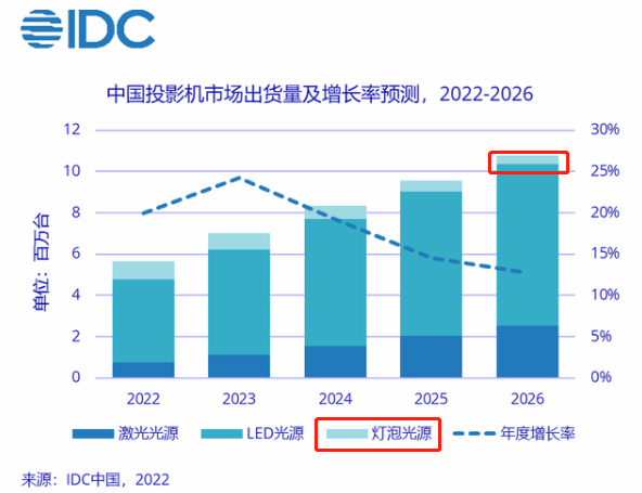 过去不少朋友秉持着“亮就是好”的信仰,入手了灯泡机。但他们一使用就会明白:为什么大部分消费者,在用过灯泡机后,就不愿意复购了,导致灯泡机市场份额越来越低。除了前面提到的几个环节外,还有一个原因是,灯泡机的亮度虽然稍高,但相比智能投影选用的LED光源,灯泡的光衰更快,寿命极短,同时色域覆盖也不如全色LED高。再加上各个环节的弱势,才造成今天灯泡光源在投影市场的溃败。目前灯泡机出货量已经掉到了5%左右,而LED光源却占到了88%。甚至在未来LED还有继续扩充的趋势。从客观的数据出发,小编就向大家分析一下,灯泡机在光源画质和使用方面,究竟有怎样的缺陷。