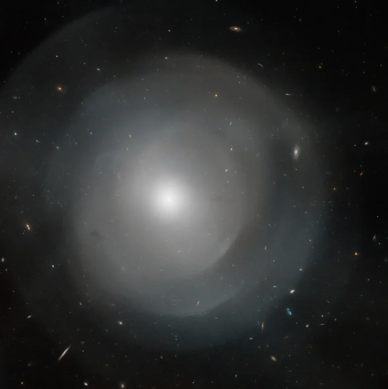 这是因为有几个分层的“外壳”围绕着这个星系。科学家们并不完全确定是什么造成了这些“外壳”。然而,他们认为,这可能是由星系合并造成的。这样的合并有可能产生了不同的分层外壳。NASA表示,这就类似于一个掉进池塘的小石子可能会在水面上产生涟漪。