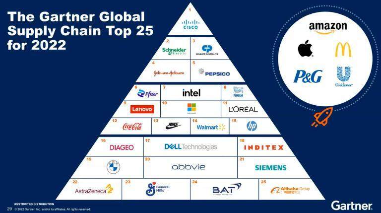 Gartner昨天正式公布了2022年的全球Top25供应链的报告。多年来它一直在定义卓越供应链的全球企业,从300家企业寻找优秀的践行者。在当前制造格局令人焦虑的不确定性下,看看那些优秀企业所采取的措施,具有很强的现实意义。