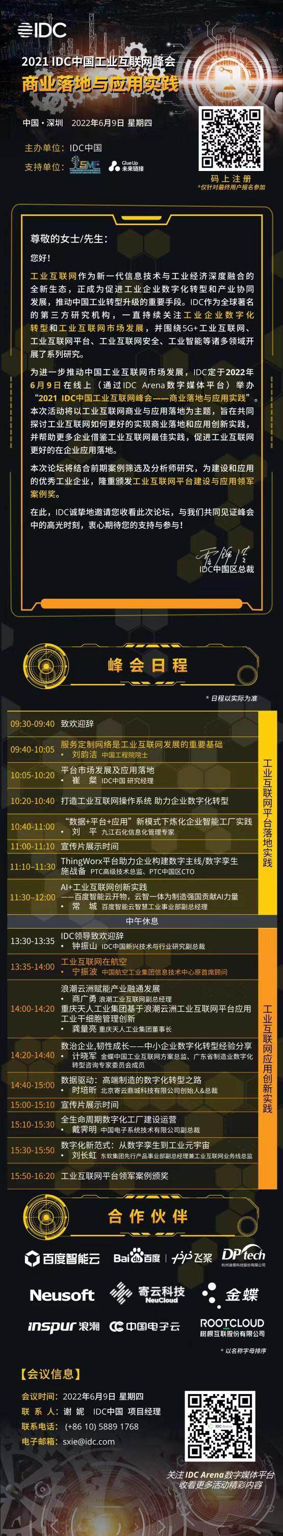 规划再多,应用落地最重要。为进一步推动中国工业互联网市场发展,IDC将于2022年6月9日线上(通过IDC Arena数字媒体平台)举办“IDC中国工业互联网峰会——商业落地与应用实践"。本次活动以工业互联网商业与应用落地为主题,旨在共同探讨工业互联网如何更好的实现商业落地和应用创新实践,并帮助更多企业借鉴工业互联网最佳实践,促进工业互联网更好的在企业应用落地。
