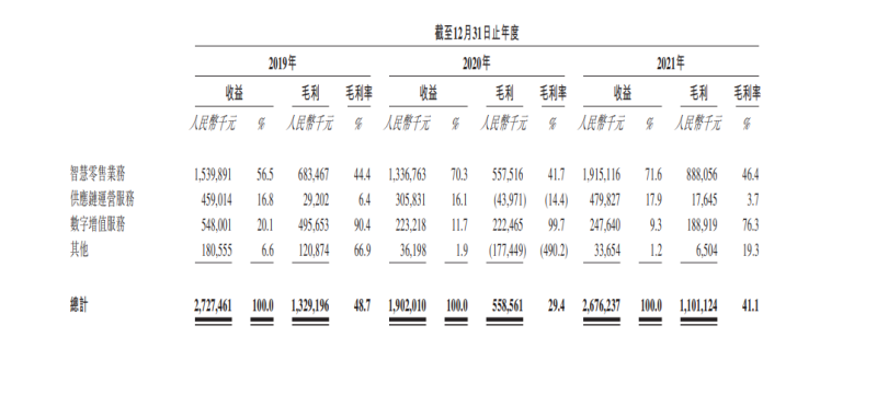 友宝主要由智慧零售业务、供应链运营服务、数字增值业务构成。其中,友宝的大部分收入来自智慧零售业务。于2019年、2020年及2021年,智慧零售业务产生的收入占比分别为56.5%、70.3%及71.6%。