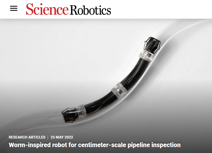 该成果以“用于亚厘米级管状环境导航的管道检测机器人”(A pipeline inspection robot for navigating tubular environments in the sub-centimeter scale)为题发表在《科学·机器人》(Science Robotics)上。